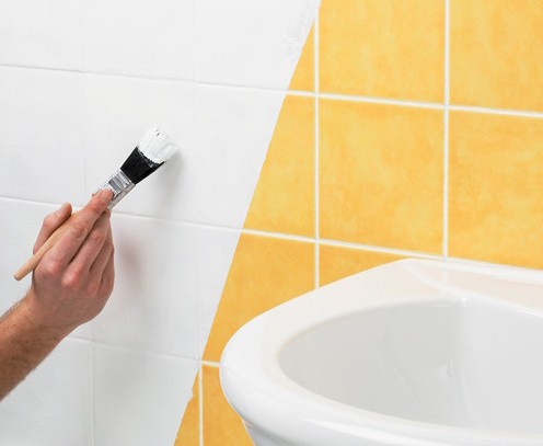 Такая реставрация плитки в ванной, как окраска применяется достаточно редко, поскольку красочный слой на плитке не держится.