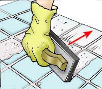 - двигать затирочную терку относительно швов по диагонали, удаляя излишки затирки;