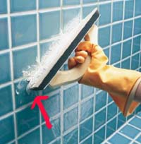 - дать время затирке немного схватиться перед началом влажного удаления (от 5 до 20 минут, в зависимости от типа основания, плитки и клея).