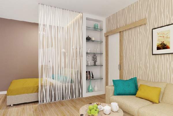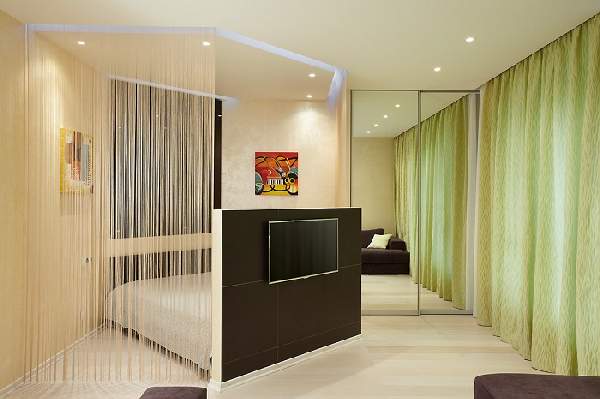 Зонирование однокомнатной квартиры: фото перегородок