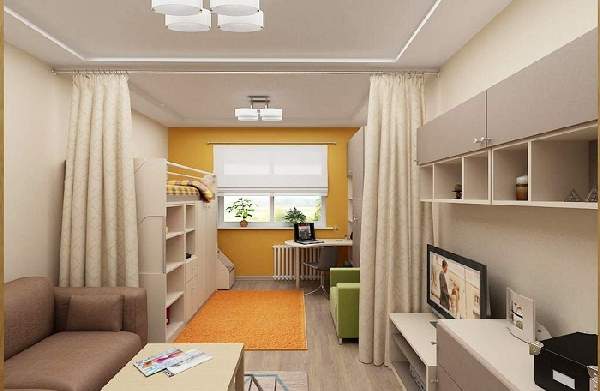 Зонирование шторами однокомнатной квартиры: фото стильных интерьеров