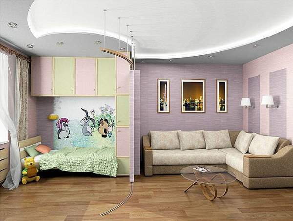 Зонирование однокомнатной квартиры с ребенком: фото оформления мини-детской