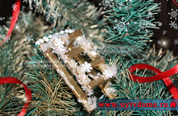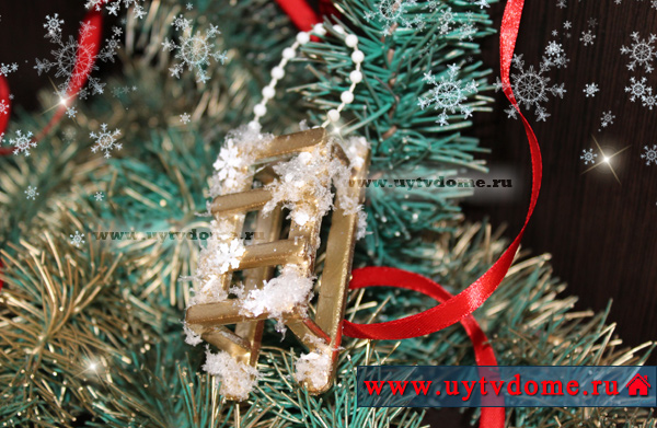 Здравствуйте, уважаемые читатели! В данном обзоре, сайт «Уют в Доме» продемонстрирует Вам, как делаются миниатюрные санки из пенополистирола своими руками. В результате элементарных манипуляций получается замечательная тематическая елочная игрушка. Ну что же приступим.