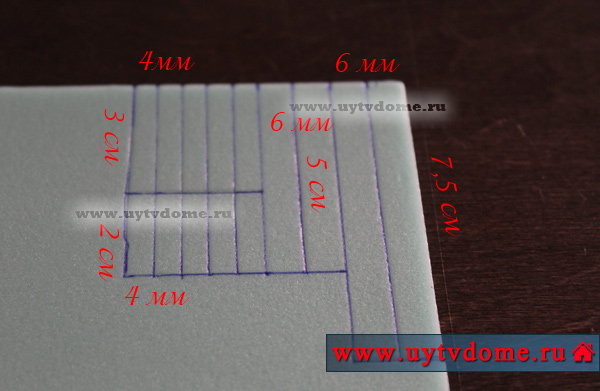 Берем лист пенополистирола и расчерчиваем его согласно приведенному ниже примеру.