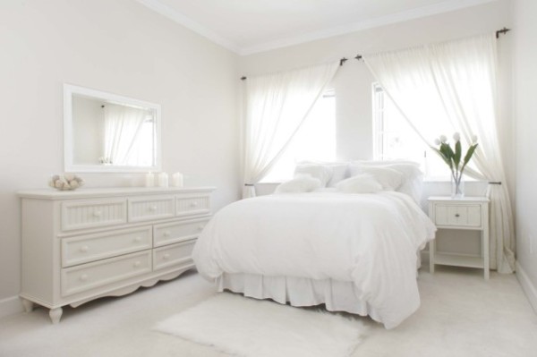 В небольших спальнях используйте мебель в тон отделки стен. Визуально она будет сливаться с обстановкой.