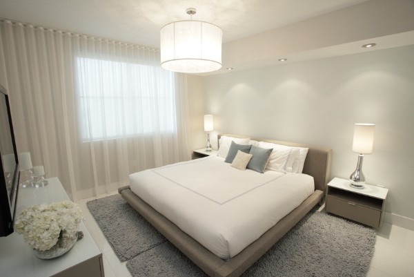 Чтобы придать интерьеру спальни большей выразительности, можно использовать несколько ярких пятен. Это могут быть подушки, небольшой прикроватный коврик, абажур торшера.
