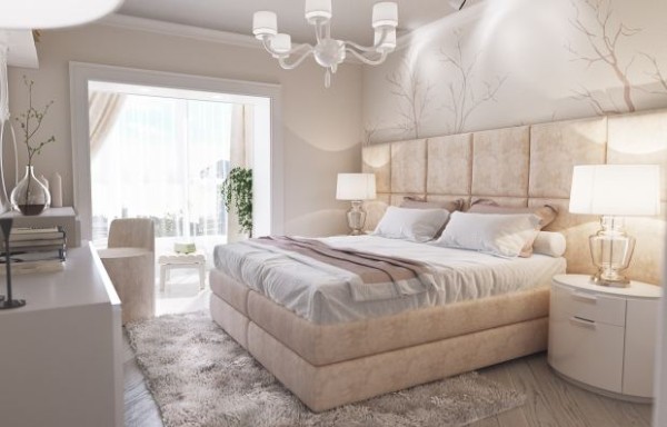Плюс бежевого еще и в его универсальности. Беж можно без проблем использовать без других цветов. При этом интерьер спальни не будет скучным и унылым. Почему, спросите вы? Этот цвет очень многогранен. У него много интересных оттенков: ванильный, бисквитный, карамельный, песочный, кофе с молоком, слоновая кость.