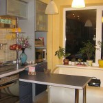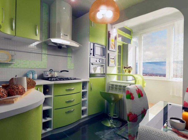 Часто помещение настолько маленькое, что и стол поставить проблематично. Но и тут есть решение, причем не одно. Самый простой вариант — если есть подоконник, и к нему есть свободный доступ, сделать его частью стола. Нужно будет заказать столешницу сложной формы и установить ее на место подоконника. Получится вполне приличных размеров стол, за которым могут обедать два человека.