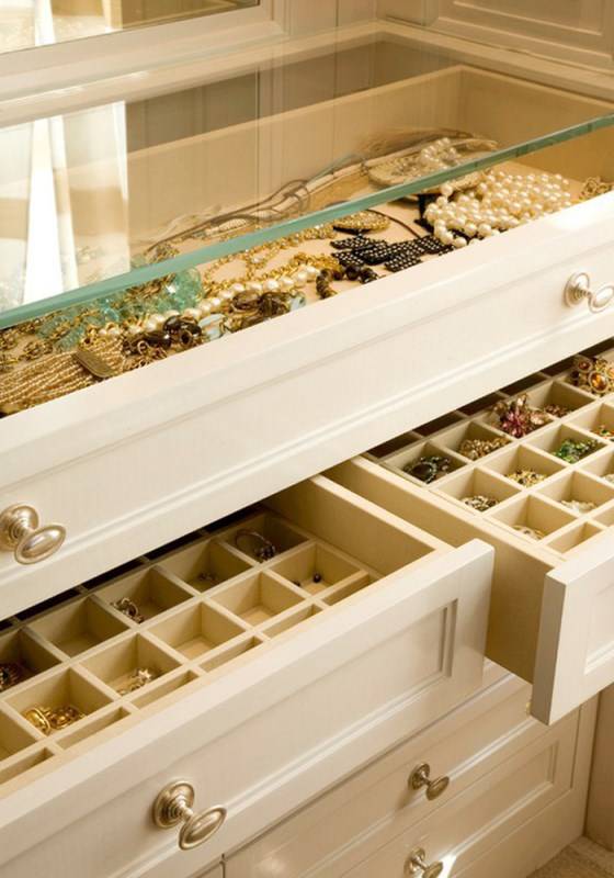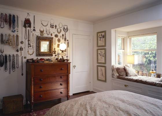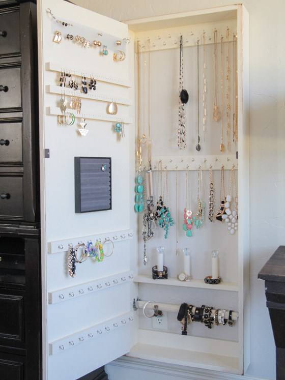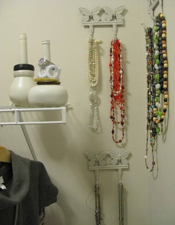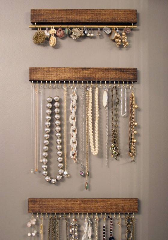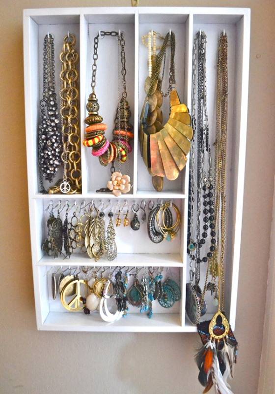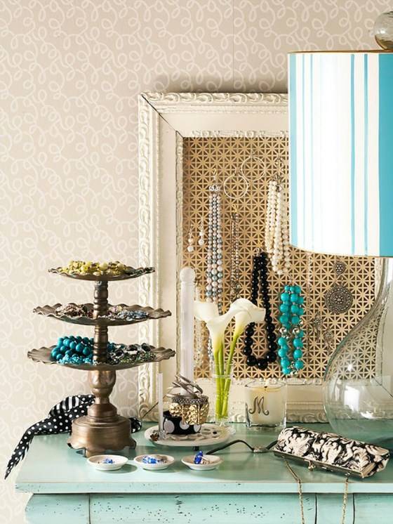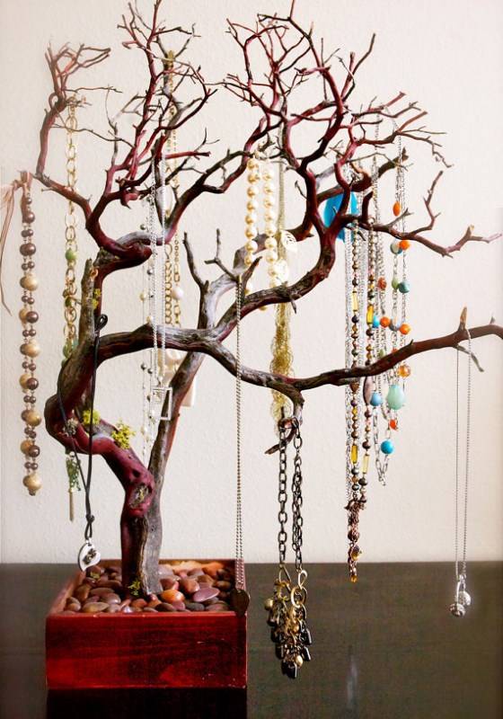 Для многих из нас идеальным местом для хранения украшений представляется роскошный шкаф, комод или туалетный столик с множеством отделений, обитых темным бархатом. С другой стороны, когда украшения хранятся в закрытых ящиках, то о них можно и позабыть. Согласитесь: выбирать подходящее ожерелье под платье намного удобней, когда все возможные варианты находятся у вас перед глазами. Вы используете ювелирные изделия, чтобы украшать свое тело? Так почему бы не позволить им украшать и ваш дом, пока вы их не носите?