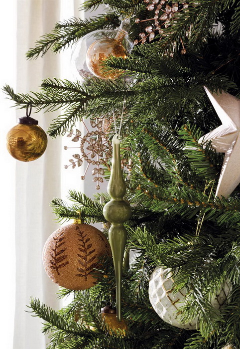Основным местом, где уместно использовать золотой цвет в декоре, является новогодняя елка. Лесная красавица, украшенная золотистыми игрушками или бантами, безусловно, станет эталоном элегантности.