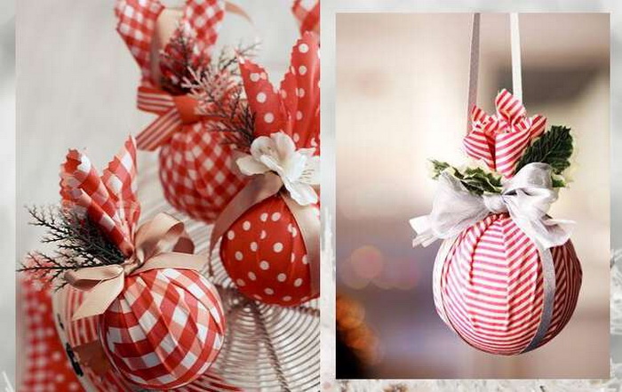 Для украшения ёлки иногда хочется иметь шары одного цвета – нет ничего проще! Ткань или бумага, выбирайте, ту, что легче всего принимает форму! А быть может это вовсе и не шарики, а сюрпризы для гостей и домашних!