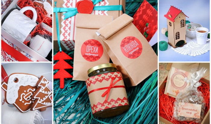 Пакетики с вкусностями, забавное и душистое мыло, нарядное печенье — всё это тоже может быть и украшением и маленьким подарком, стоит только придать всему этому новогодний вид. Рассматривая картинку, можно убедиться, что это почти ничего не стоит.