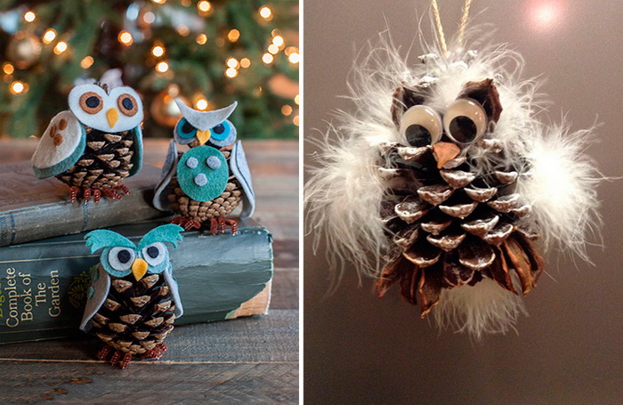 Если есть ёлки, то должны быть и шишки! А шишки можно нарядить в пух и перья!