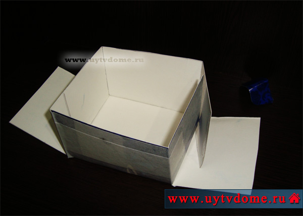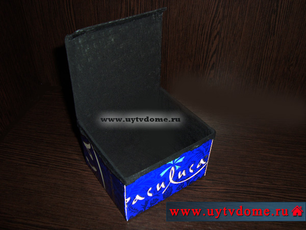 ► Вырезаем из картона крышку, для этого отмеряем ширину и длину шкатулки, не забыв сделать запас для приклеивания. Приклеиваем крышку к внутренней части шкатулки.