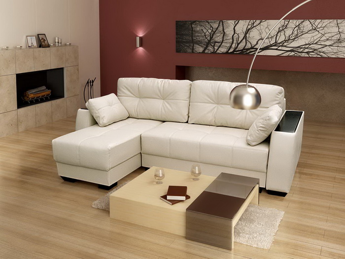 • Если позволяет размер комнаты, то мягкую мебель лучше всего разместить в центре. Остальные предметы мебели будут располагаться вдоль стен. При этом нужно учитывать, что между проходами должно быть достаточно места, а в центре, возле дивана, правильнее поставить журнальный столик.