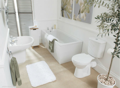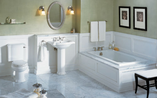 Поэтому стены и пол белой ванной комнаты лучше покрыть плиткой теплого оттенка, а вот всю сантехнику приобрести в холодном цвете.