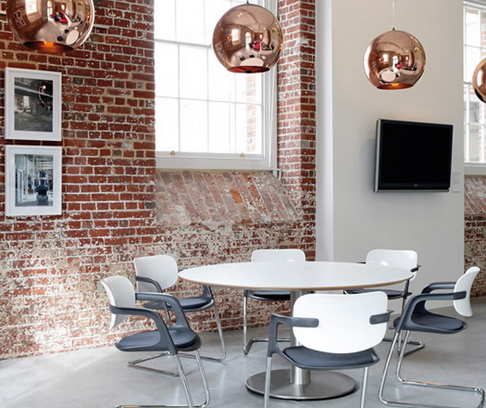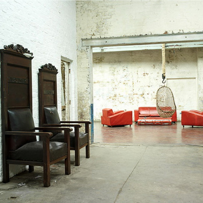 При разработке внутреннего интерьера почти всегда сохраняется оригинальная отделка: металлические балки, бетонные стены, добавляются китчевые предметы интерьера.