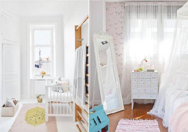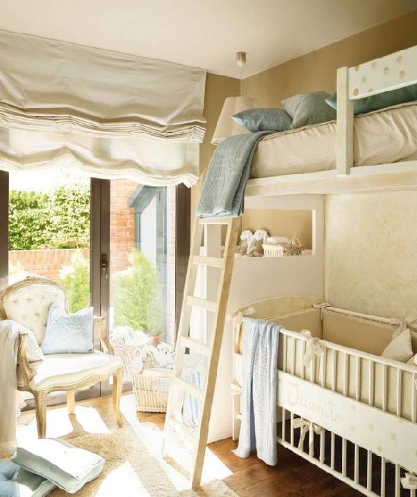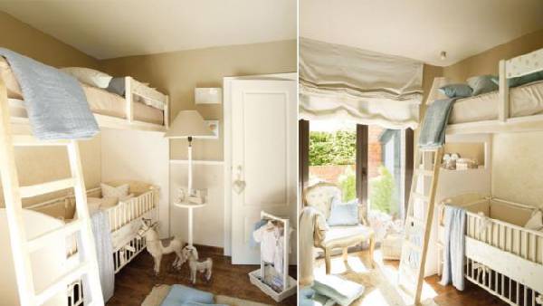 Самая главная рекомендация: в интерьере такой комнаты должен преобладать белый, бежевый цвет (или другие светлые оттенки). Так, детская будет казаться более воздушной и лёгкой.