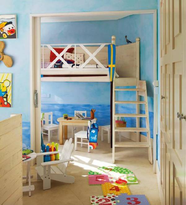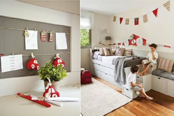Даже если дети разнополые, всегда можно найти компромисс, и в итоге получить детскую, которая удовлетворит как девочку, так и мальчика. Для того, чтобы угодить обоим детям, нужно прежде всего посоветоваться с ними. Спросить о том, что они хотели бы видеть в комнате. Возможно, их устроит комната в одном стиле (например, в морском, как на следующем фото). Либо же детям будет больше по душе оформление комнаты в разные цвета (к примеру, розовый и синий, в зависимости от пола).