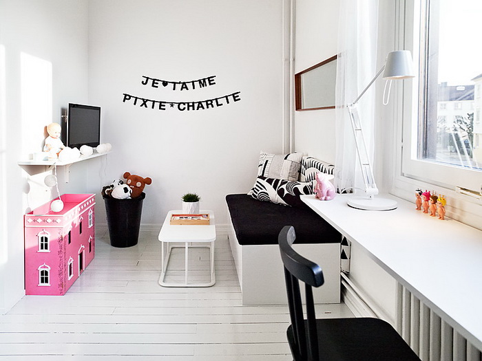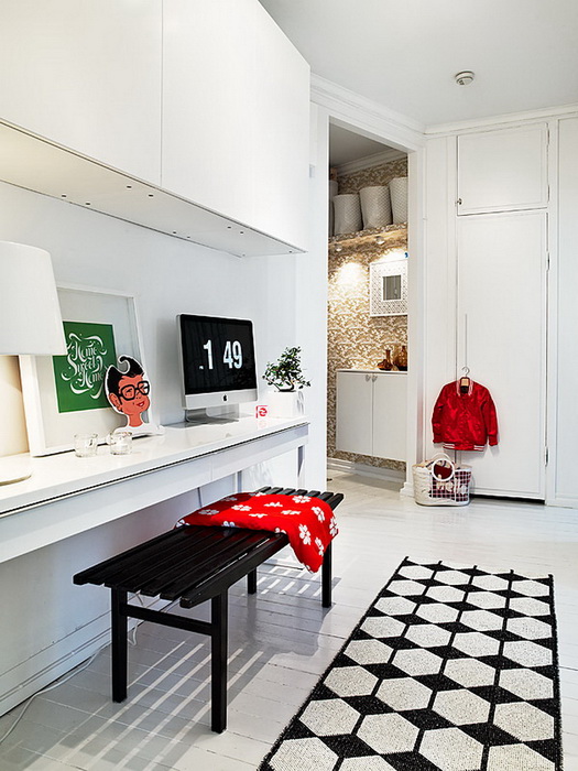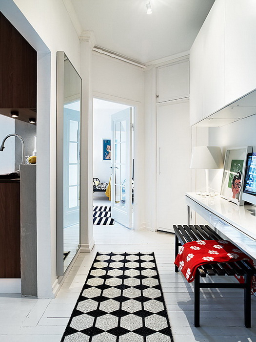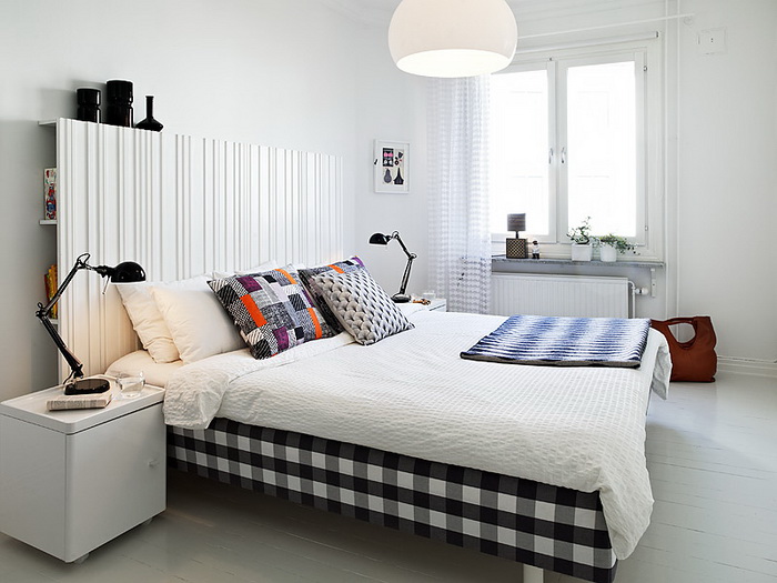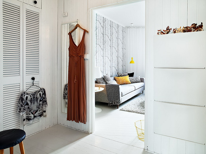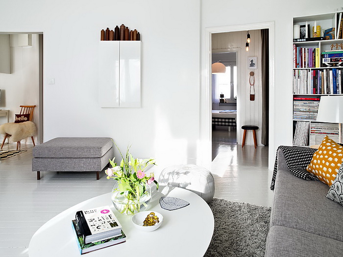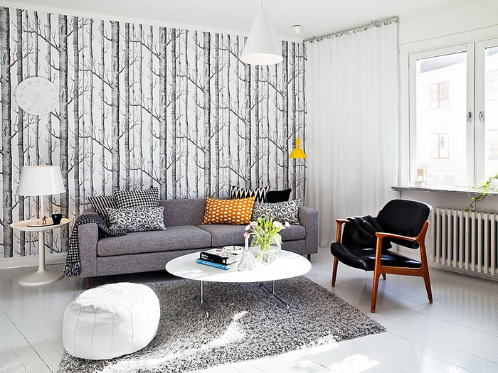 Большинство интерьеров — белые, но шведы любят красить одну стену в яркий насыщенный цвет или обклеивать цветастыми обоями.