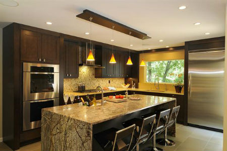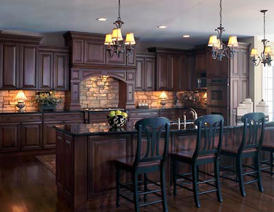 Еще примеры коричневых кухонь: