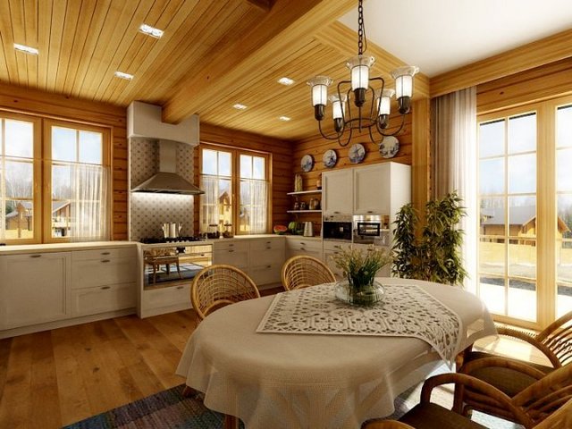 № 3 Интерьер деревянной кухни студии в доме