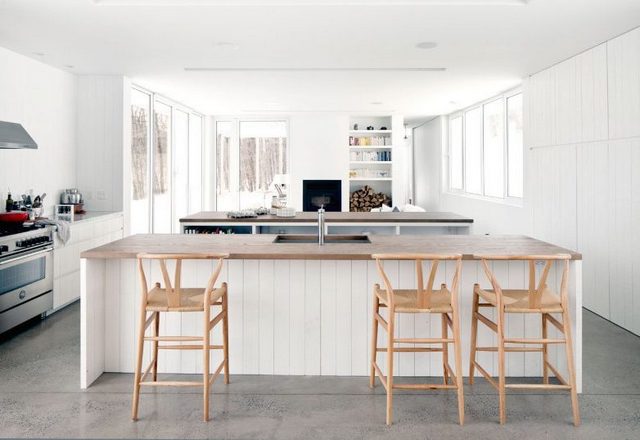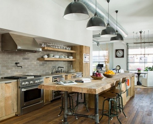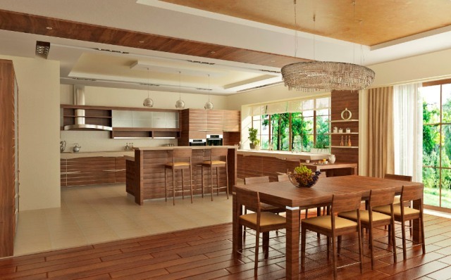 Если речь идёт о просторном частном доме, что может быть лучше, чем натуральность? Деревянная кухня студия — беспроигрышный вариант, который никогда не потеряет актуальности.