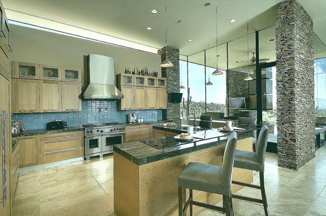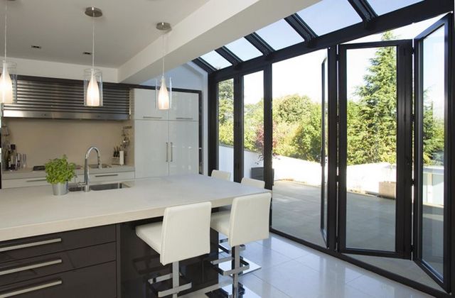 № 1 Интерьер кухни студии в доме с панорамными окнами