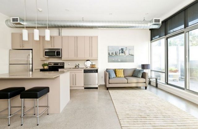 № 4 Интерьер современной кухни студии в стиле лофт