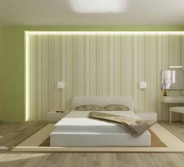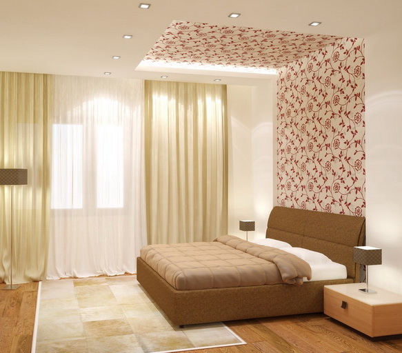 Желательно, чтобы дизайн маленькой спальни, был выполнен в одной цветовой гамме. Не стоит использовать мрачные, темные тона. Выбирайте светлые оттенки, обои лучше с горизонтальным рисунком, который сделает маленькую комнату глубже, больше и выше. Оптимальный вариант для потолка – покрасить его в белый цвет.
