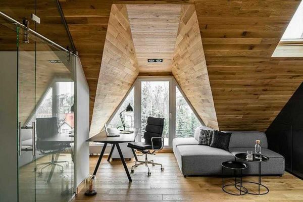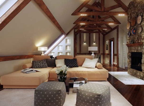 Гостиная, спальня, кабинет, детская — вот перечень помещений, которые делают на мансардном этаже