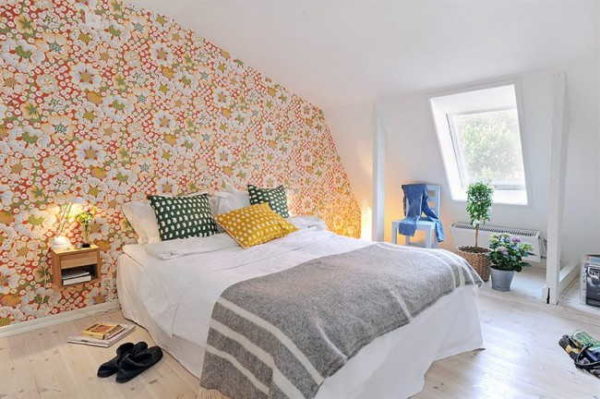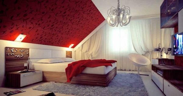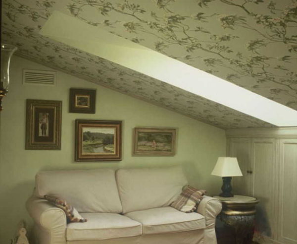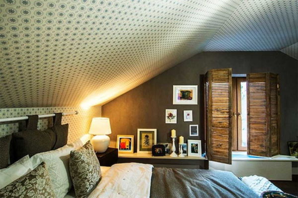 Особенность дизайна мансард в том, что потолок тоже можно оклеивать обоями