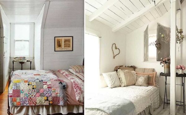 Спальня в стиле прованс хорошо сочетается с крашеной доской