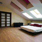 Если хотите иметь стандартный дизайн мансардного этажа максимально приближенный к современному «нейтральному» стилю, зашить потолок на мансарде можно гипсокартоном (ГКЛ). Для того чтобы при колебаниях размеров по поверхности и на стыках листов не пошли трещины, все направляющие монтируются на подвесах.
