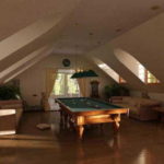 Бильярдная на мансардном этаже — дизайн классический, стены и потолок гладкие, белые