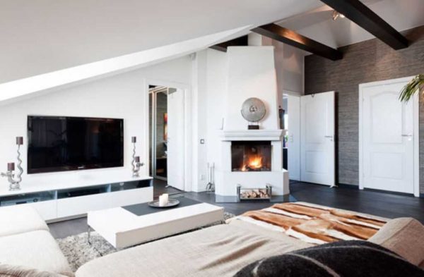 Белый гладки потолок — его тоже можно сделать на мансардном этаже