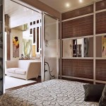 Если есть возможность, часть помещения отделяют, создавая отдельную спальню. Это можно сделать при помощи раздвижных дверей. Если двери слишком мешают, можно повесить шторы — нитяные или японские создают иллюзию отдельного помещения, а при необходимости раздвигаются.
