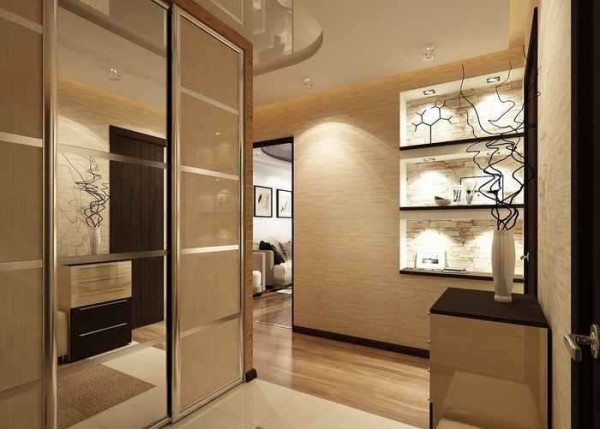 Если встроенному шкафу быть, дверцы закажите, если позволяют финансы, с зеркальными вставками — они за счет отражения будут увеличивать пространство. Если зеркало — слишком дорого, дверцы делайте светлый и глянцевые. Причина та же: это зрительно делает помещение больше.