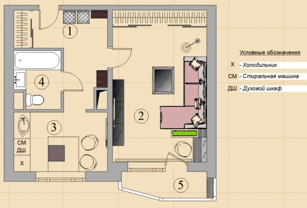 Далеко не во все однушки помещается этот набор. Выяснить это можно на плане квартиры. Рисуете ее в масштабе, в том же масштабе из цветного картона вырезаете свою имеющуюся или планируемую мебель и садитесь с этим добром за стол. На плане нужно заштриховать те области, в которые ничего поставить не получится — возле двери или дверец шкафа, обязательно обозначьте окно — тут тоже мало что можно поставить. Поигравшись так, вы определитесь с тем, что и каких размеров вам понадобится.