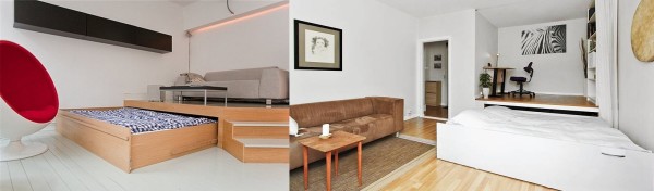 Выезжающая из-под подиума кровать — одно из нестандартных решений