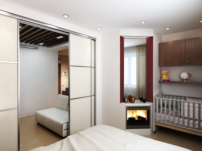В нише обычно организуют полноценное спальное место, или детский уголок, или рабочее место. Если позволяют кв. метры спальную зону отделяют лёгкой перегородкой.