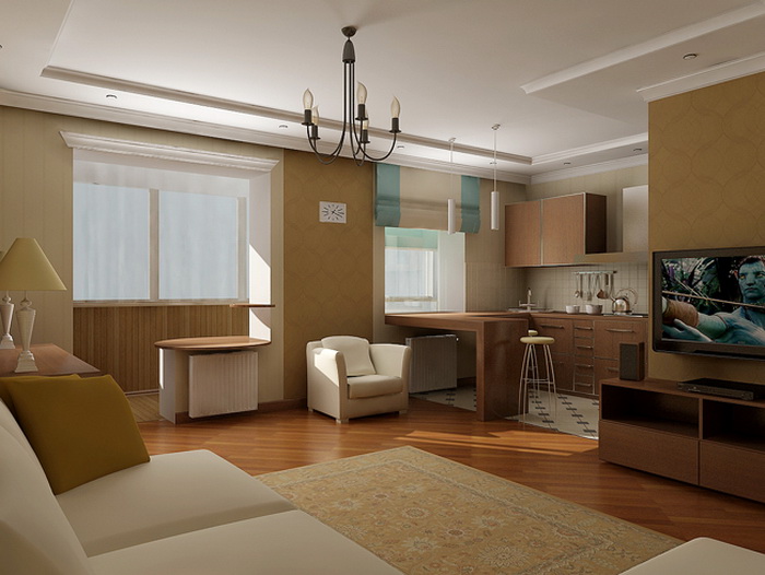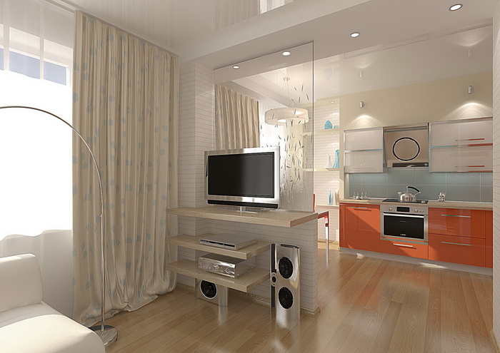 Единственное кардинальное изменение, которое может позволить себе «квартира» — это снос стены, отделяющей кухню от комнаты, и то если стена не несущая.