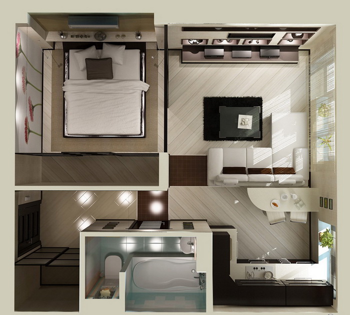 Интерьер однокомнатной квартиры