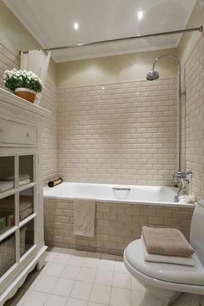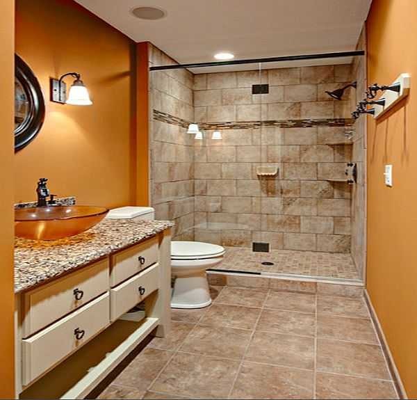 Если все-таки в санузел не получается вписать ванную, ставьте душевую кабину (как устанавливать душевую кабину читайте тут). Причем совсем не обязательно покупать готовую, можно сделать ее самостоятельно — соорудить поддон из плитки и установить дверки.