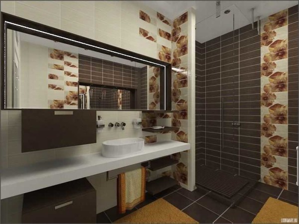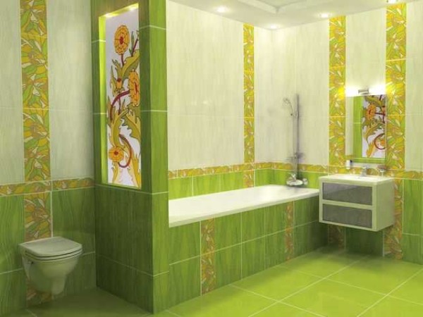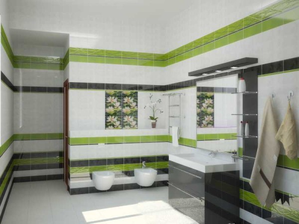 В оформлении стен санузла наблюдаются такие же тенденции — комбинирование плитки разных цветов и оттенков. Также как и при комбинировании обоев, плитку производители выпускают коллекциями дизайн которых разработан так, чтобы они между собой сочетались.