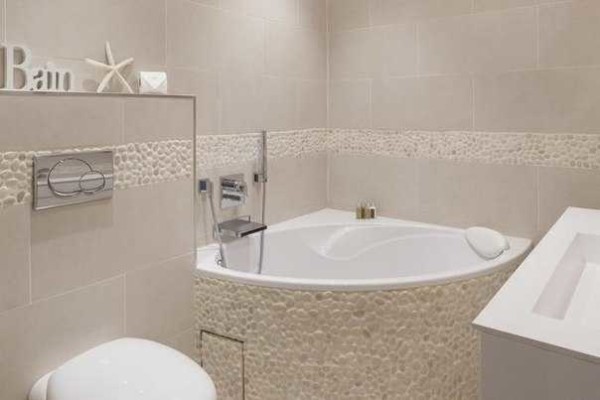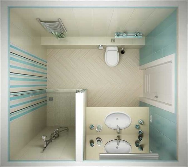 Другой вариант — поставить угловую ванную, освобождая тем самым один угол для установки стиральной машины или унитаза.