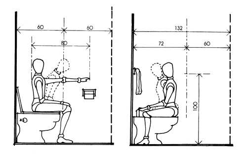 - держатель для туалетной бумаги располагают на расстоянии вытянутой руки — порядка 80-90 см от задней стенки на высоте 60-70 см;