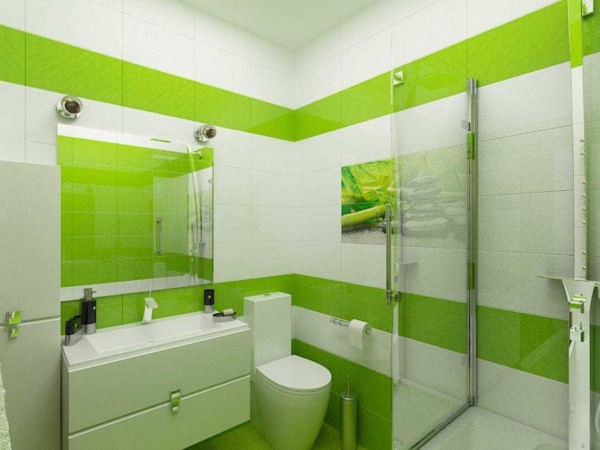 Сочная зелень на белом фоне — простая и эффектная раскладка плитки (противоположная сторона полностью зеленая)