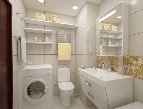 Если есть в санузле небольшое свободное пространство, можно попытаться найти под него стиральную машинку