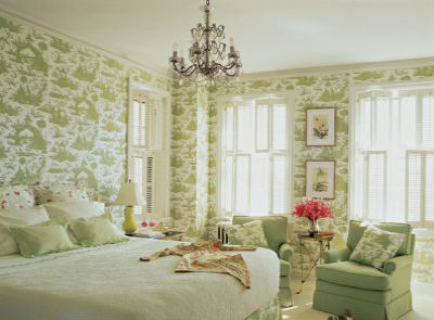 Простые обои в мелкий цветочек, тоже станут прекрасным дополнением спальни прованс.